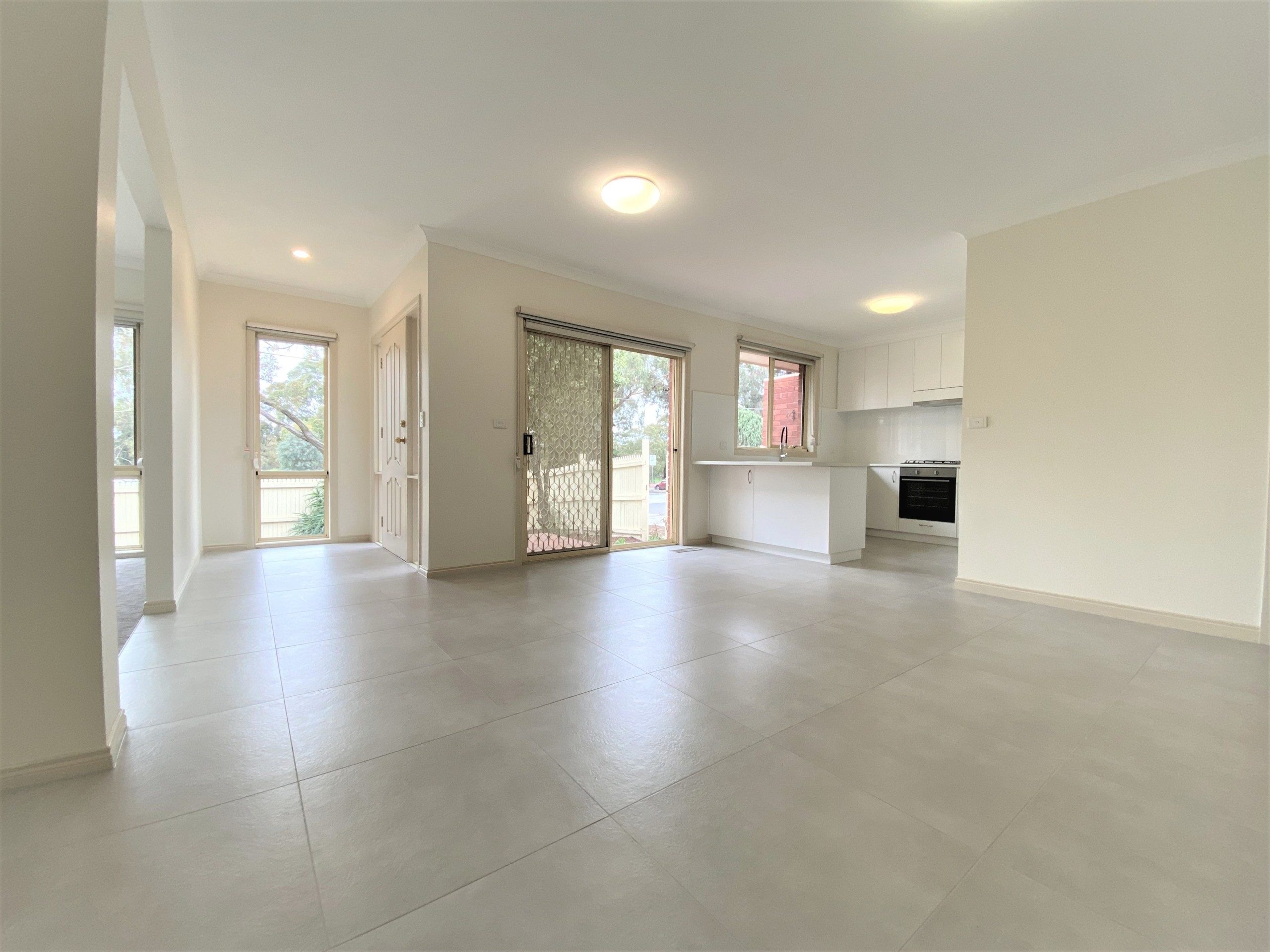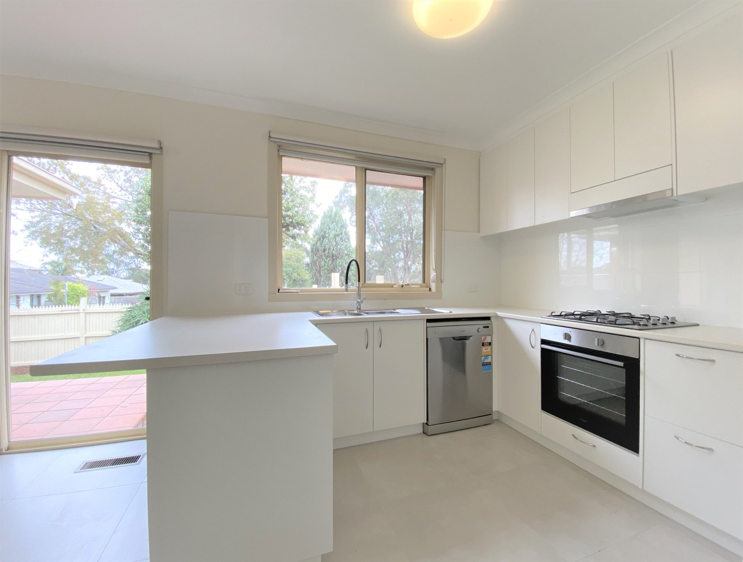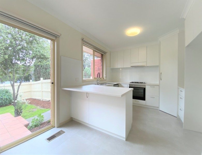 ituated behind a picket fence is this beautifully presented villa unit with its own driveway, features tiled front foyer, sun filled formal living room, brand new kitchen with stainless steel appliances, open plan meals / family room overlooking the front courtyard, 3 bedrooms, (all with mirrored sliding door robes and ensuite to master), gas ducted heating, split system air-conditioner,  double remote garage with internal access. located in a prime position ,