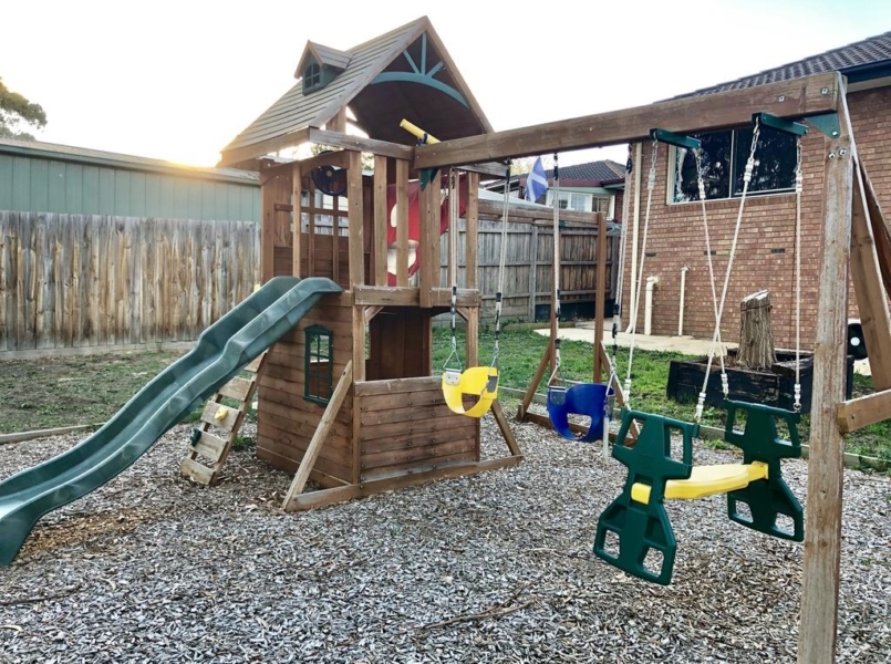 The modern kitchen overlooks the informal living which has doors opening to a lovely deck. Beyond the deck is a fenced yard ideal for the children to play and there is also play equipment for them to enjoy. Behind the back fence is Balcombe Avenue Reserve. The kids will love the open space.