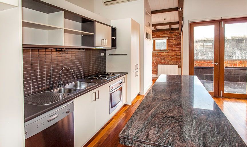 Located within a sought after pocket of the Pentridge Village Precinct, this custom designed loft style residence comprises glossy hardwood floors in the spacious open plan living areas, exposed heritage brickwork and beams, fully equipped kitchen with stone benches and stainless steel appliances, bi-fold doors opening to the balcony, two bedrooms (the master with ensuite), study nook, euro laundry with dryer, central bathroom next to second bathroom, built in robes, powder room, hydronic heating and split system air conditioner, private courtyard and 2 car spaces.
