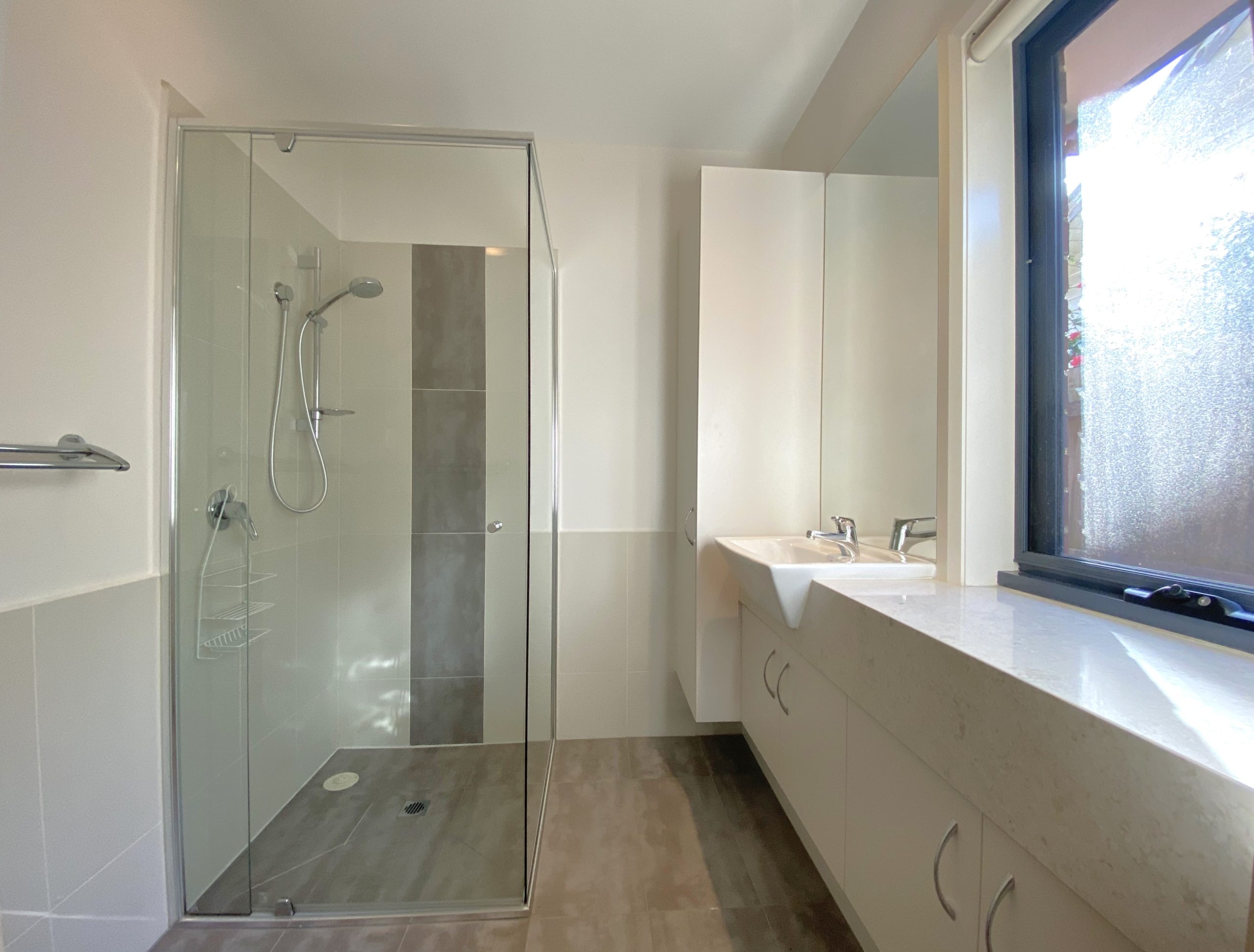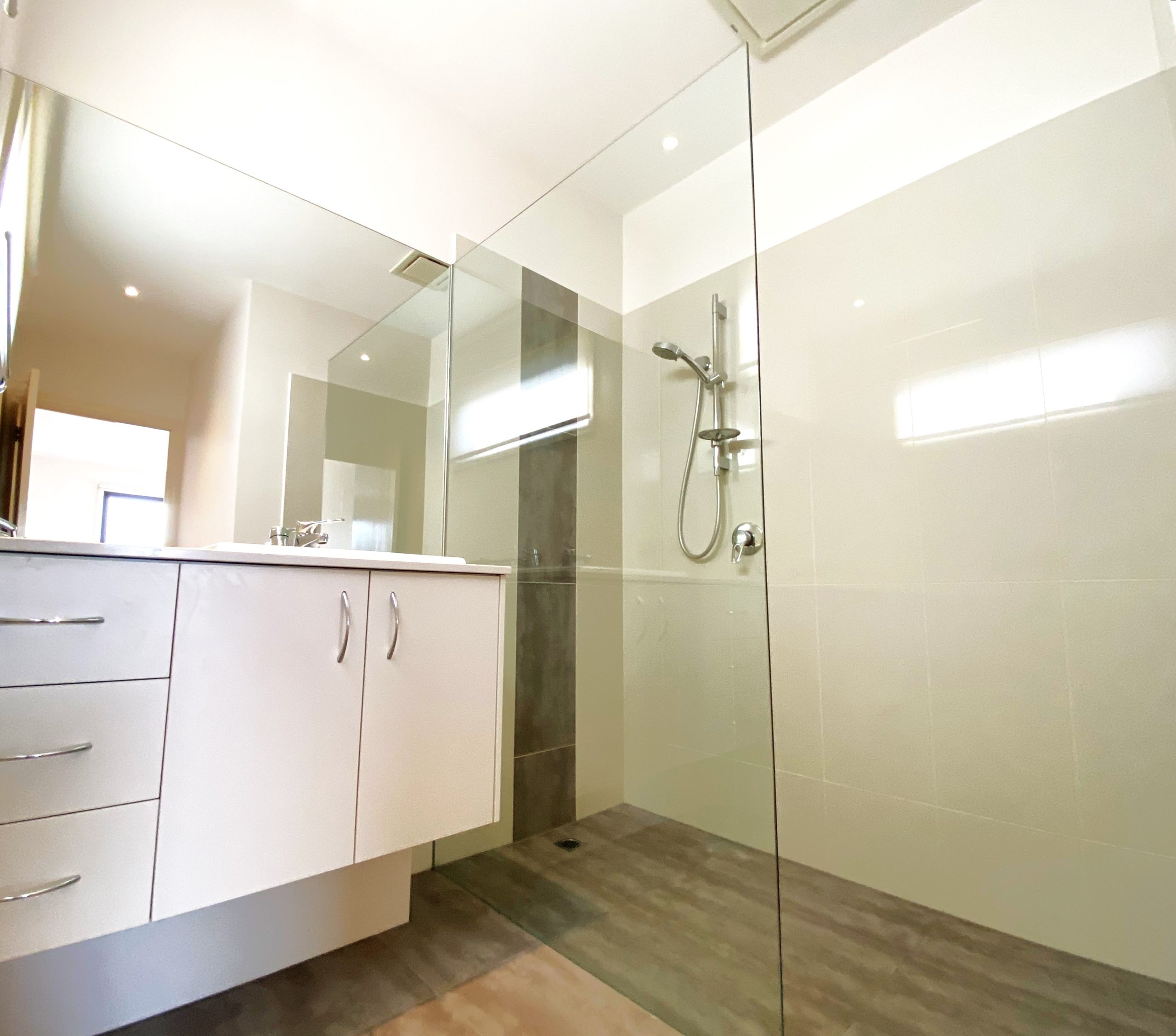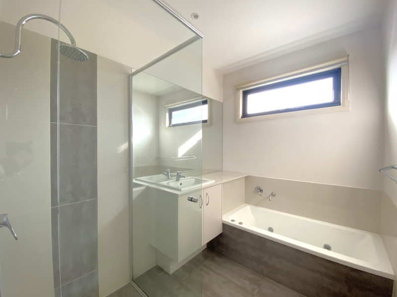 You’ll love the bright modern interiors and floorplan versatility of this three bedroom home, each with private ensuites, and a study or 4th bedroom. Boasts a spacious open plan kitchen and living room with sliding doors linking the undercover outdoor entertaining area, hardwood floors and carpet in the bedrooms, gas ducted heating and evaporative cooling, a separate laundry, and a double remote garage via right-of-way.