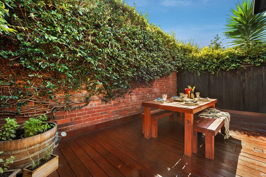Open up the French doors from the kitchen leading out to the low maintenance rear yard and you’ll find the perfect place for outdoor entertaining or to simply watch the kids at play.