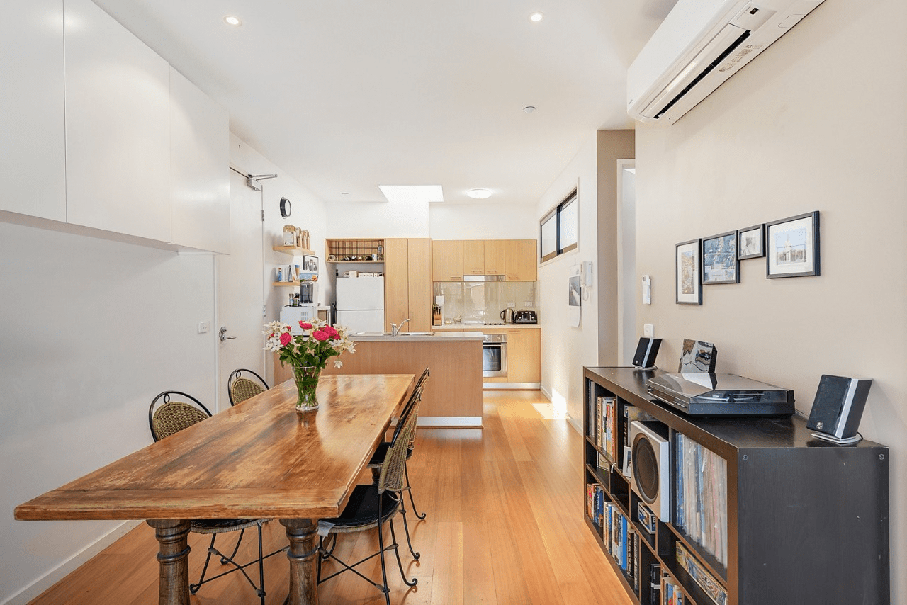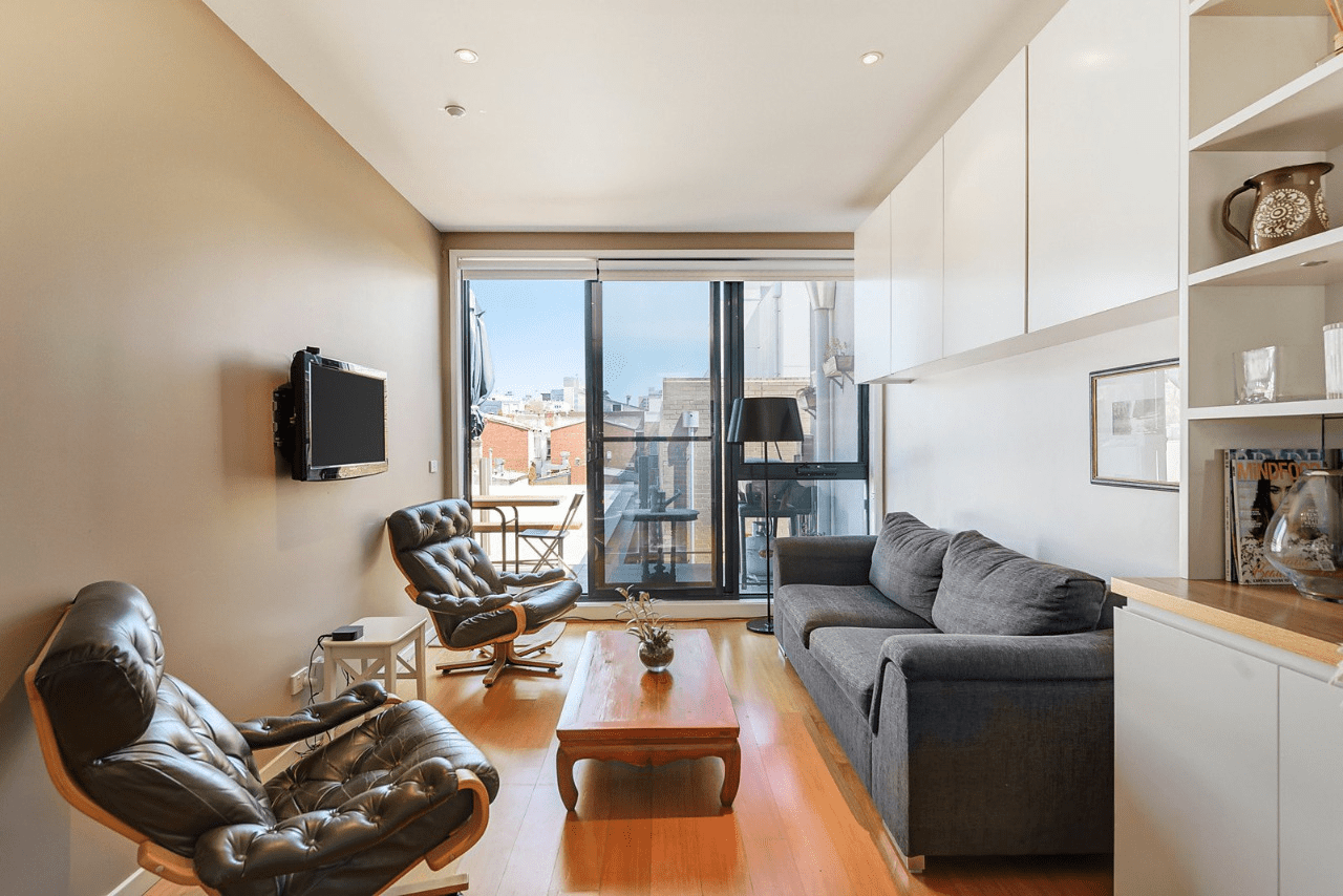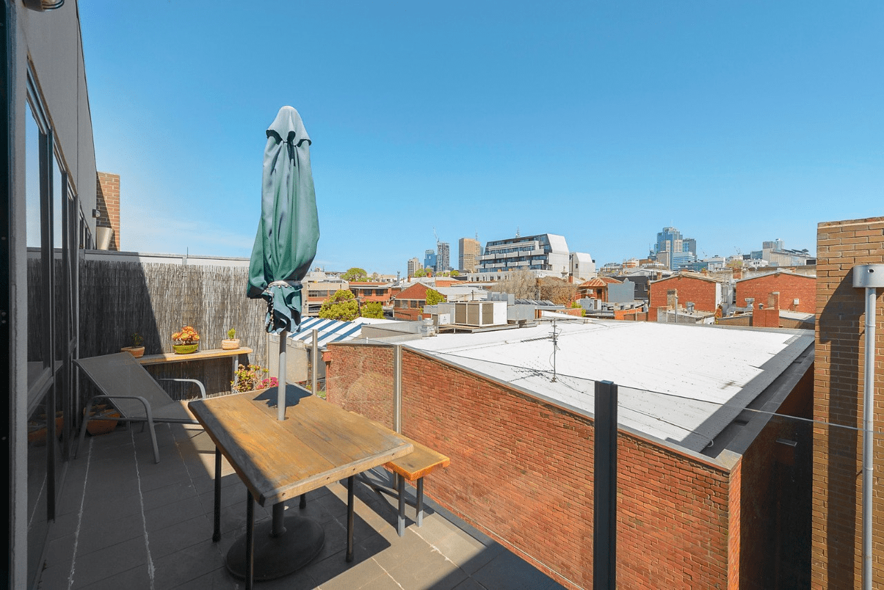 An impressively oversized and secure block, this top-floor apartment on the fringe of East Melbourne comprises 2 bedrooms, (both with built in robes) and deluxe 2-way bathroom, stone-top kitchen with stainless steel appliances, vast open-plan living/dining area with a sliding door opening to a full-width entertainers’ terrace with city views, multiple split-system heating/cooling units, intercom security, excellent storage spaces, lift access to foyer, 2 secure and undercover parking spaces and storage cage. Situated within walking distance to Victoria Parade trams, as well as Gertrude Street / Smith Street cafes and restaurants, local shops, supermarkets and Fitzroy Gardens.
