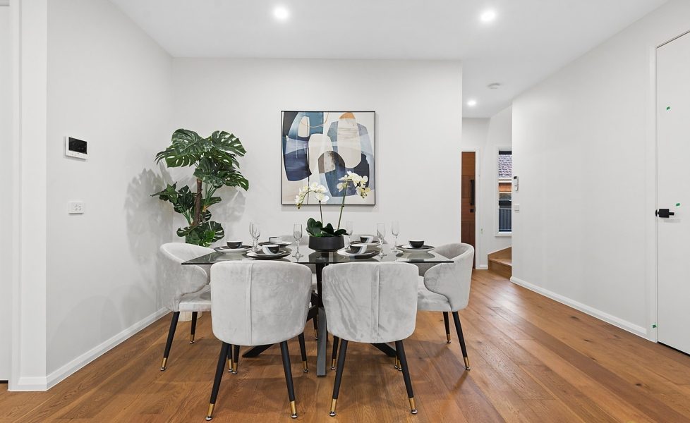 This luxurious 1 year old town residence features four bedrooms and three bathrooms, and is just metres from Donburn Village restaurants and specialty shops. Zoned for Donburn Primary School and East Doncaster Secondary College, the interior is an oasis with sleek stone surfaces and luscious floorboards. The kitchen is appointed with quality Bosch appliances and overlooks the living/dining with courtyard access.