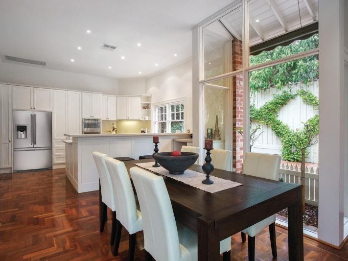 This beautifully presented family home is a real find. Set behind a pretty picket fence and surrounded by meticulously kept gardens the home has so much to offer families. There are four spacious bedrooms, separate lounge with ornamental fire place. The ensuite has a spa bath and there is a second family bathroom. The kitchen living area is a dream with large picture windows opening out to the terrace giving you an ideal view of the private and picturesque garden which is the ideal space for the kids to play. There is also a built in BBQ. The bright living space has a lovely wood fire for those cold winter nights. The kitchen itself has more than ample bench and cupboard space and comes complete with dishwasher. Ducted heating makes for comfortable living and there is also air conditioning. A double garage with remote access is a great feature. So close to Victoria Park, public transport, preschools and schools there really is nothing more the family could possible want!