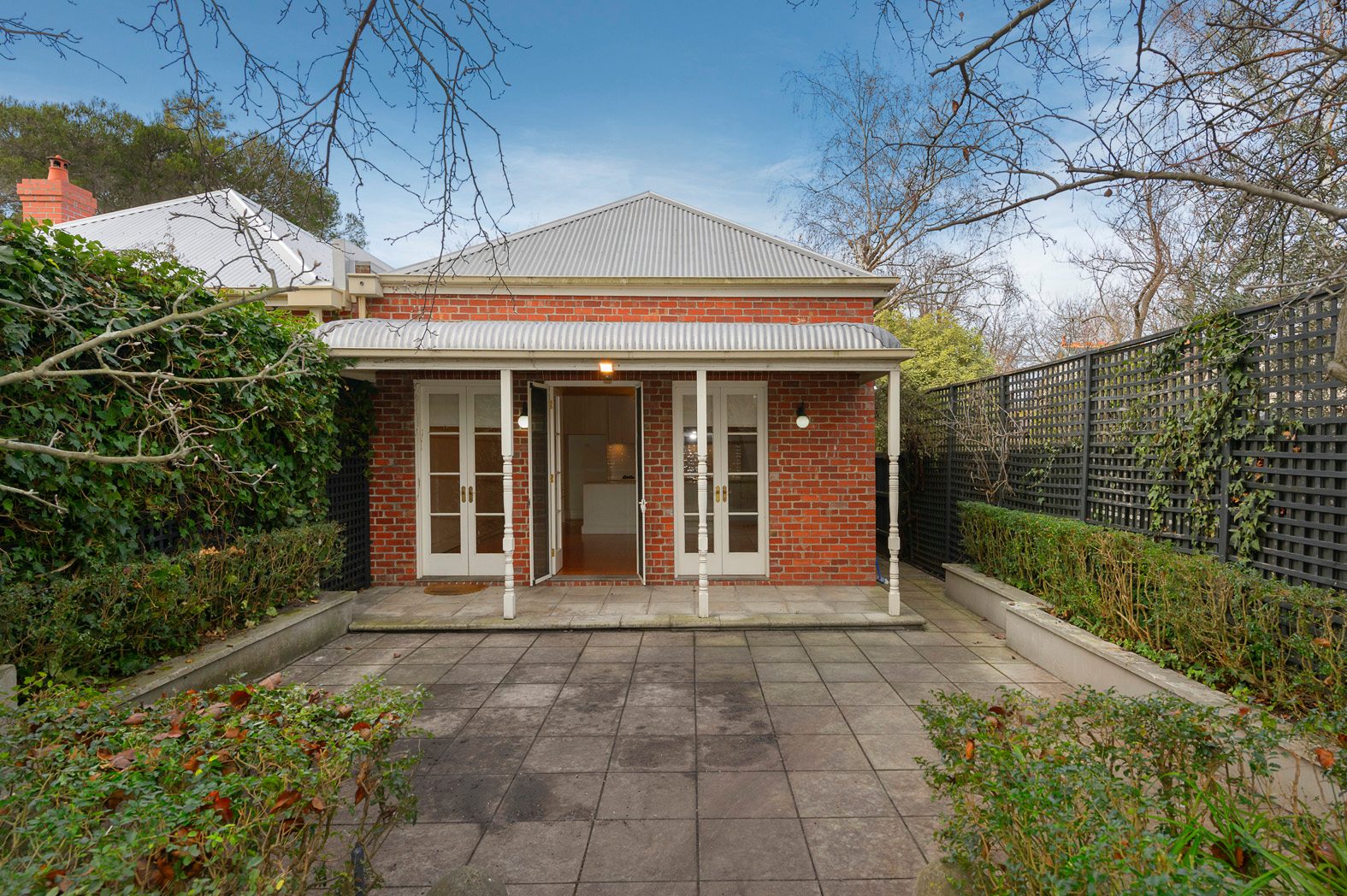 Interior provides light and bright accommodation comprising arched hallway flanked by three bedrooms with BIRs, 2 with decorative OFPs and leading to a full-width formal sitting room, main bathroom with shower over bath, separate walk-through laundry with a second shower room, stylish open-plan kitchen living/dining area (Jetmaster FP), with French doors opening to paved courtyard.