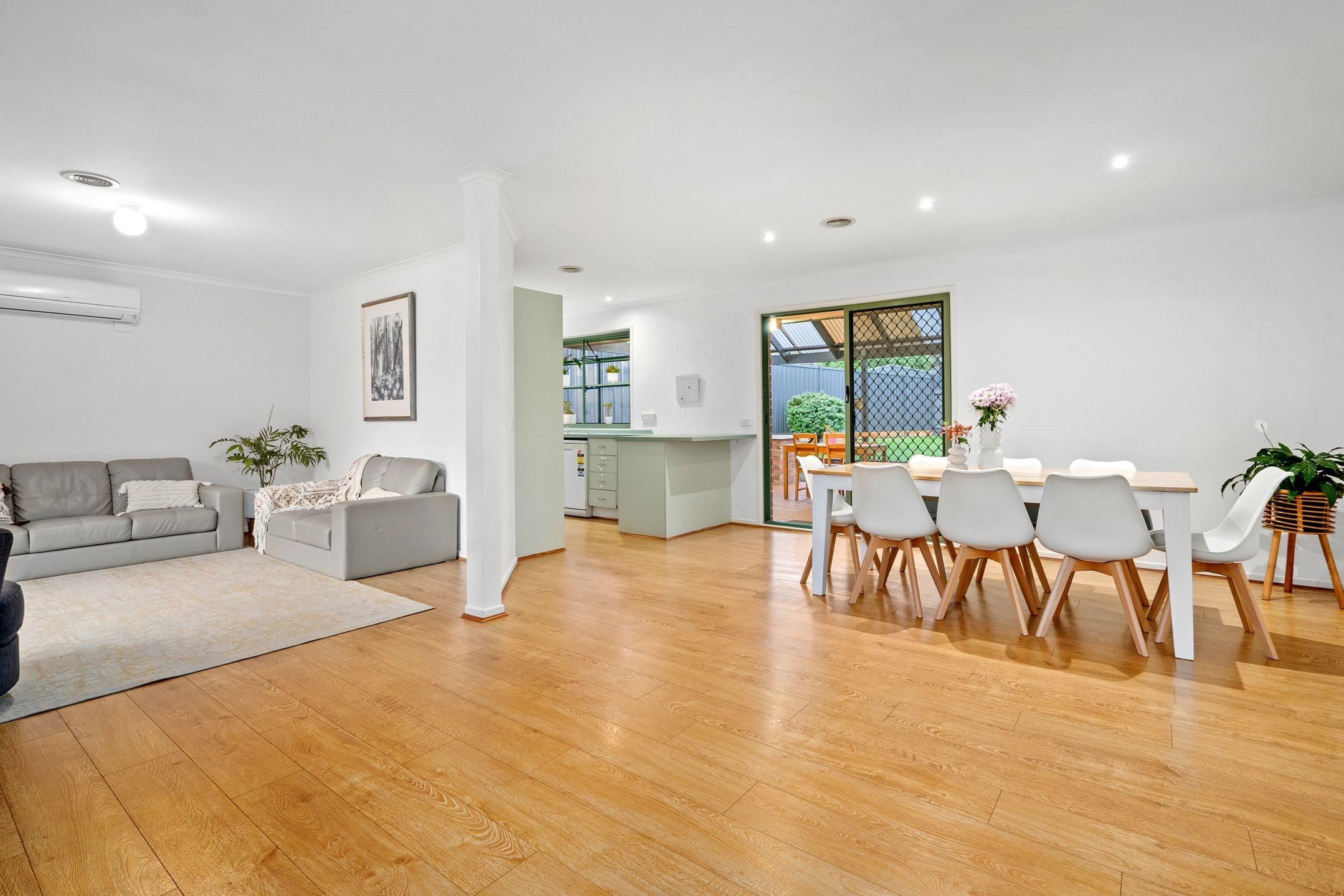 This 3-bedroom home in the popular Riverside Estate in within walking distance to park lands and features timber floors in the living areas and near new carpets in the bedrooms, kitchen with dishwasher, gas cooker, electric oven, and a garden window, built in robes in all bedrooms, master with 2-way bathroom, gas ducted heating, 4 split systems air-conditioners for year round comfort, quality blinds, single lock-up garage, a covered outdoor entertaining area for family gatherings, and garden shed.