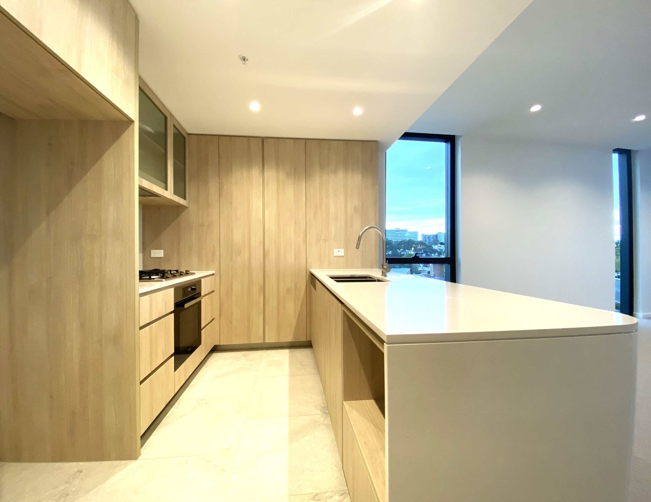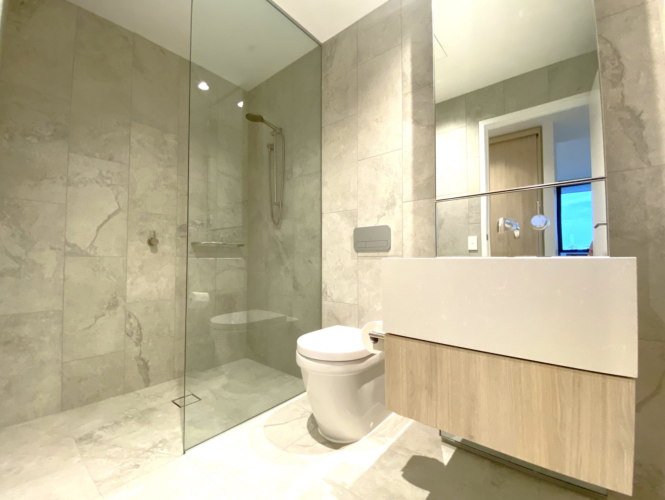 Features an open plan living-dining area with sliding glass doors opening to a wide balcony where you can relax and take in the views, kitchen with high end fittings such as stone benches, Miele appliances, soft close cabinetry, two bedrooms (master with fitted built in robes and ensuite), deluxe second bathroom, study alcove, Euro laundry with extra cupboard space, ducted heating and air conditioning, video intercom entry plus a basement parking space and storage cage.